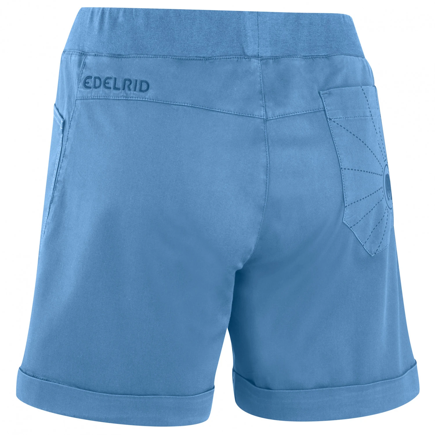 Die Women’s Kamikaze Shorts von Edelrid überzeugt nicht nur optisch, sondern kann auch mit vielen praktischen Details glänzen. So ist der Bund mit elastischen Ribeinsätzen versehen und sorgt somit für optimale Bewegungsfreiheit beim Klettern.