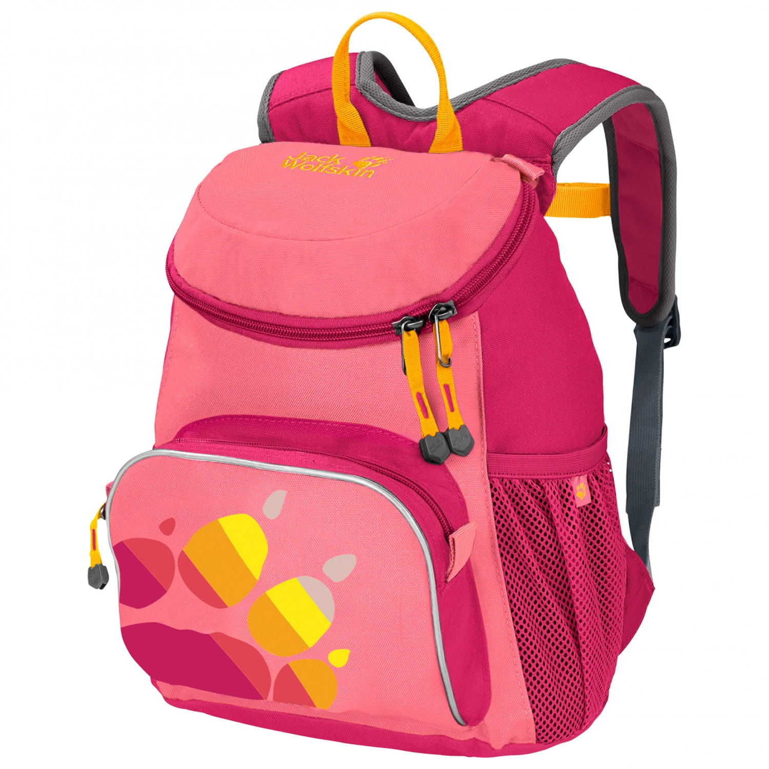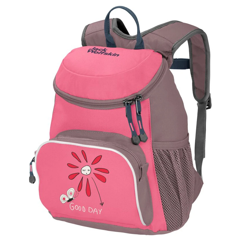 Der Tagesrucksack ist perfekt für den Kindergarten oder die ersten Wanderungen. Seine weite Öffnung macht das Beladen von oben kinderleicht. Pausenbrot, Teddy und Regenjacke verschwinden morgens schnell in den vier Fächern: Hauptfach, geräumige Vortasche und zwei Netzseitentaschen – und sind im Kindergarten wieder ruckzuck zur Hand. Alle Schnallen stellen auch die Kleinsten leicht selbst ein!