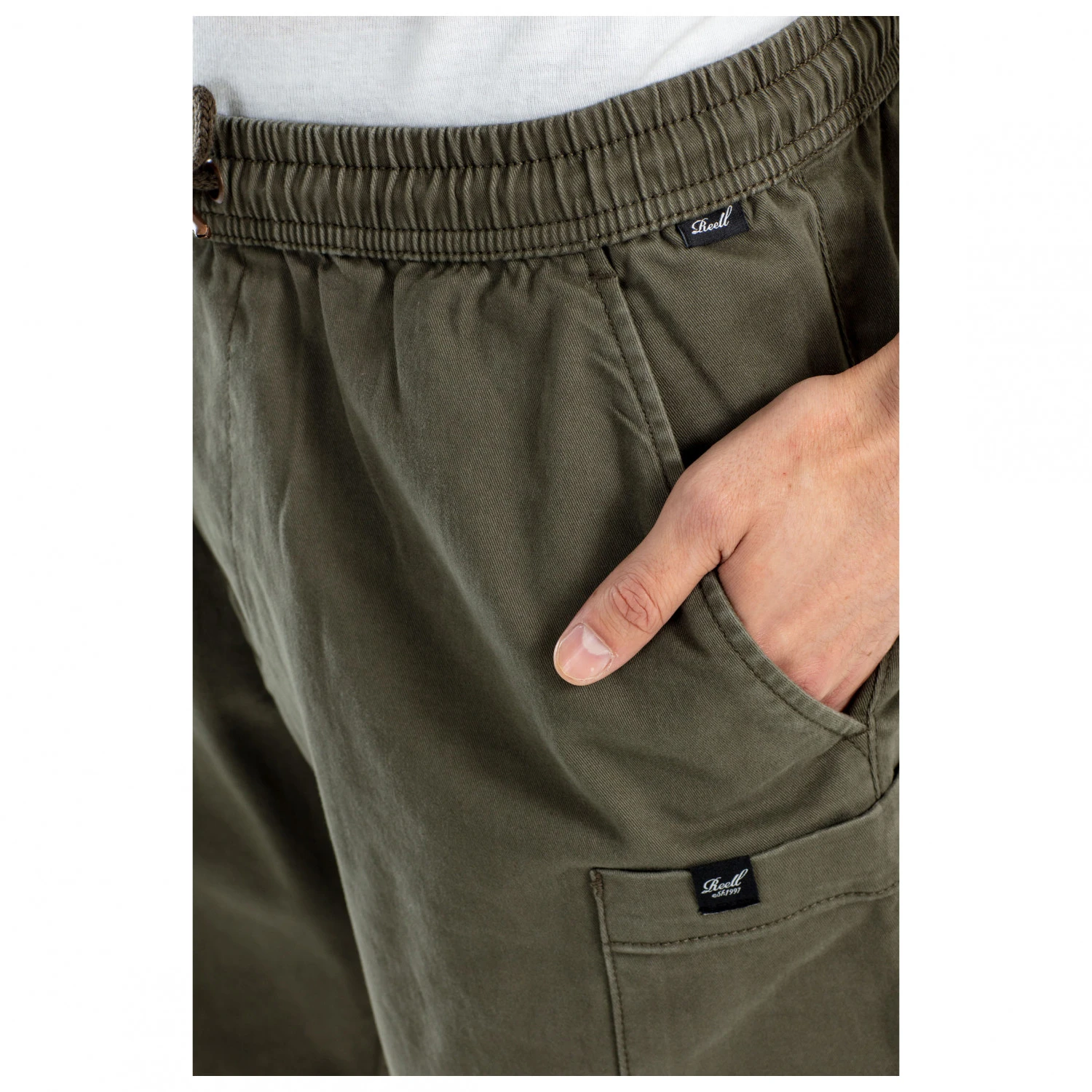 Die Reflex Easy Cargo Short von Reell ist dein perfekter Begleiter für den Sommer! Das leichte und elastische Gewebe liegt angenehm weich auf der Haut und sorgt für ein tolles Tragegefühl. Mit dem Kordelzug lässt sich die Hose optimal fixieren und sitzt hierdurch rutschfrei an der Hüfte. Neben den Stadtradtaschen an Front und Gesäß sind bei der Cargo Short noch zwei große Beintaschen angebracht worden. Zudem sorgen die Logopatches für einen stylischen Look.